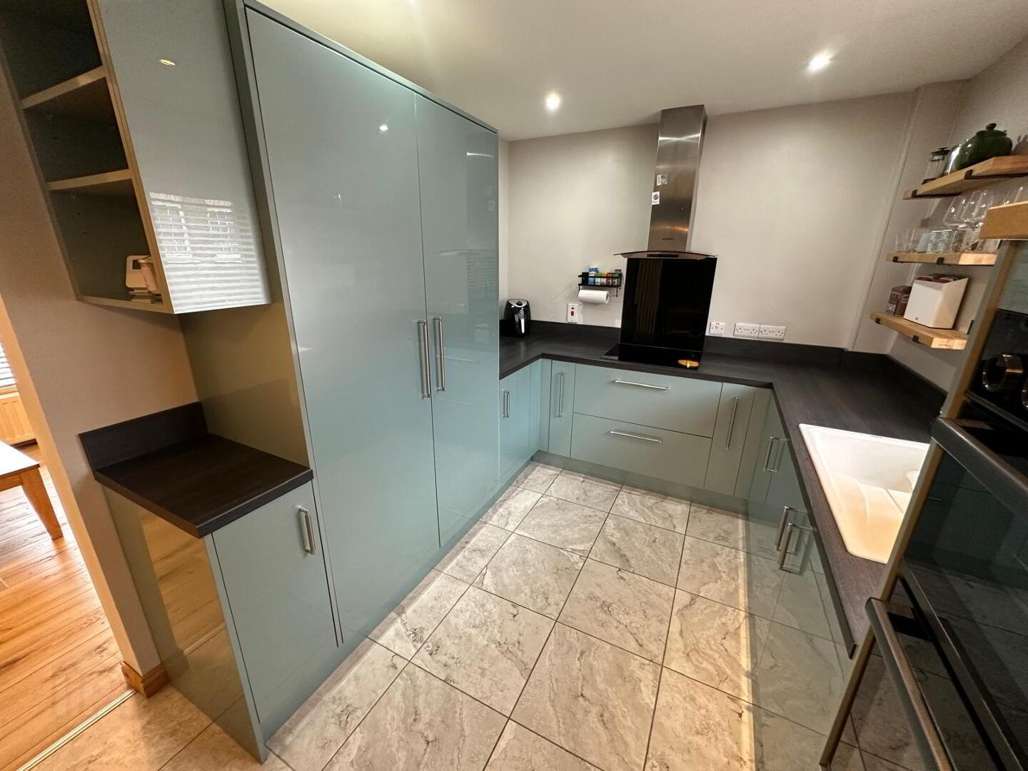 At the heart of the home is a modern kitchen fitted with integrated appliances, all included as seen, providing both functionality and a clean, streamlined design.